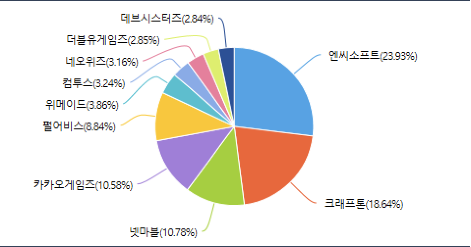 - KODEX 게임산업 : 엔씨소프트, 크래프톤, 넷마블, 카카오게임즈, 펄어비스, 위메이드, 컴투스, 네오위즈, 더블유게임즈, 데브시스터즈