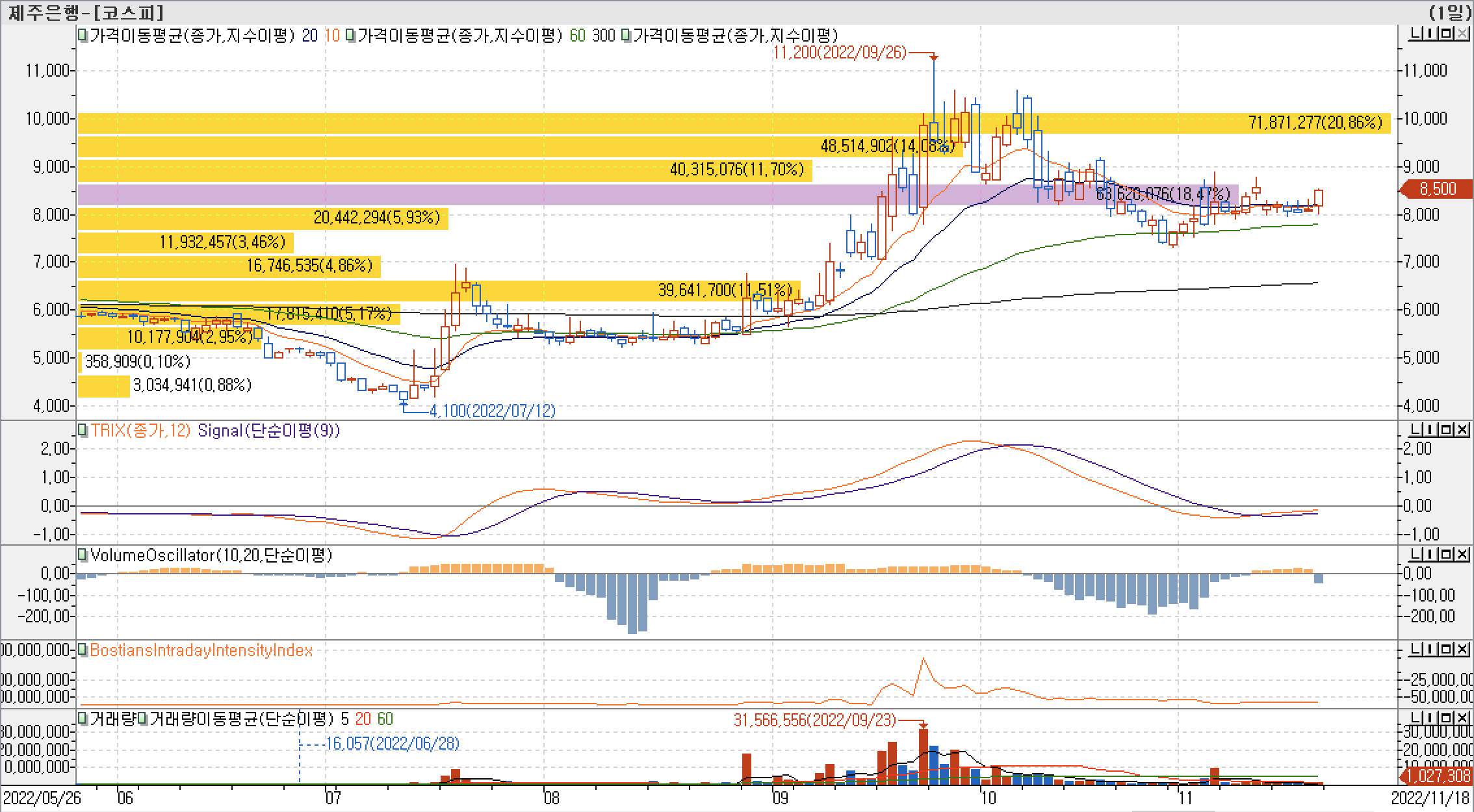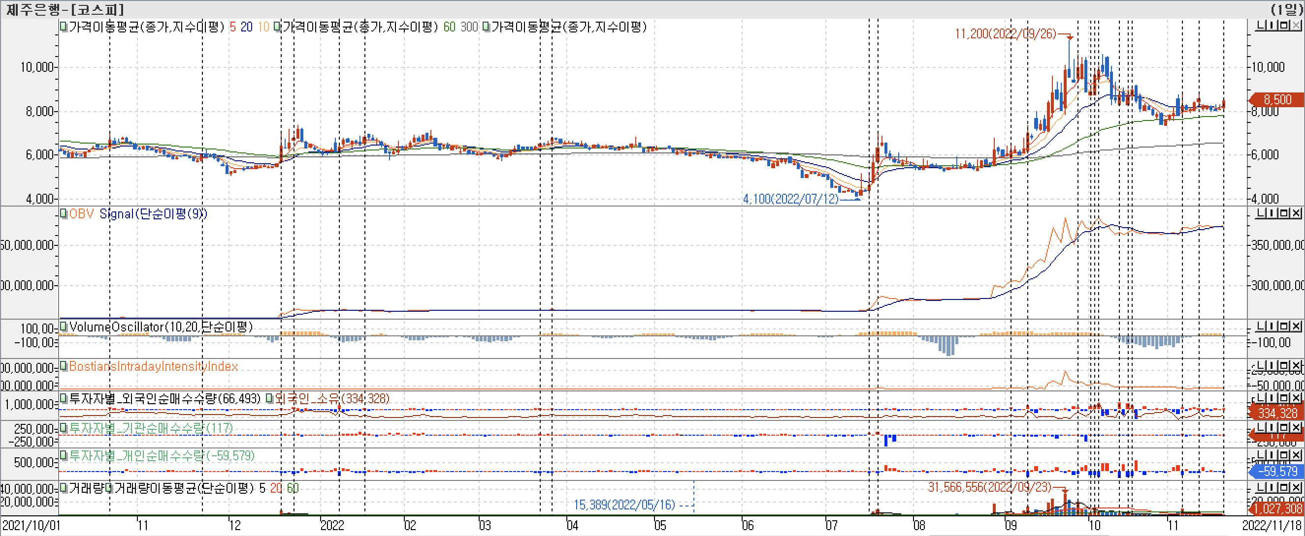 제주은행이 상승하고 있다.4일 오전 10시 26분 기준 제주은행 11.54%(900원) 상승한 8700원에 거래되고 있따.이는 미국 중앙은행인 연방준비제도(Fed·연준)이 4차례 연속 자이언트 스텝을 밟아 한국은